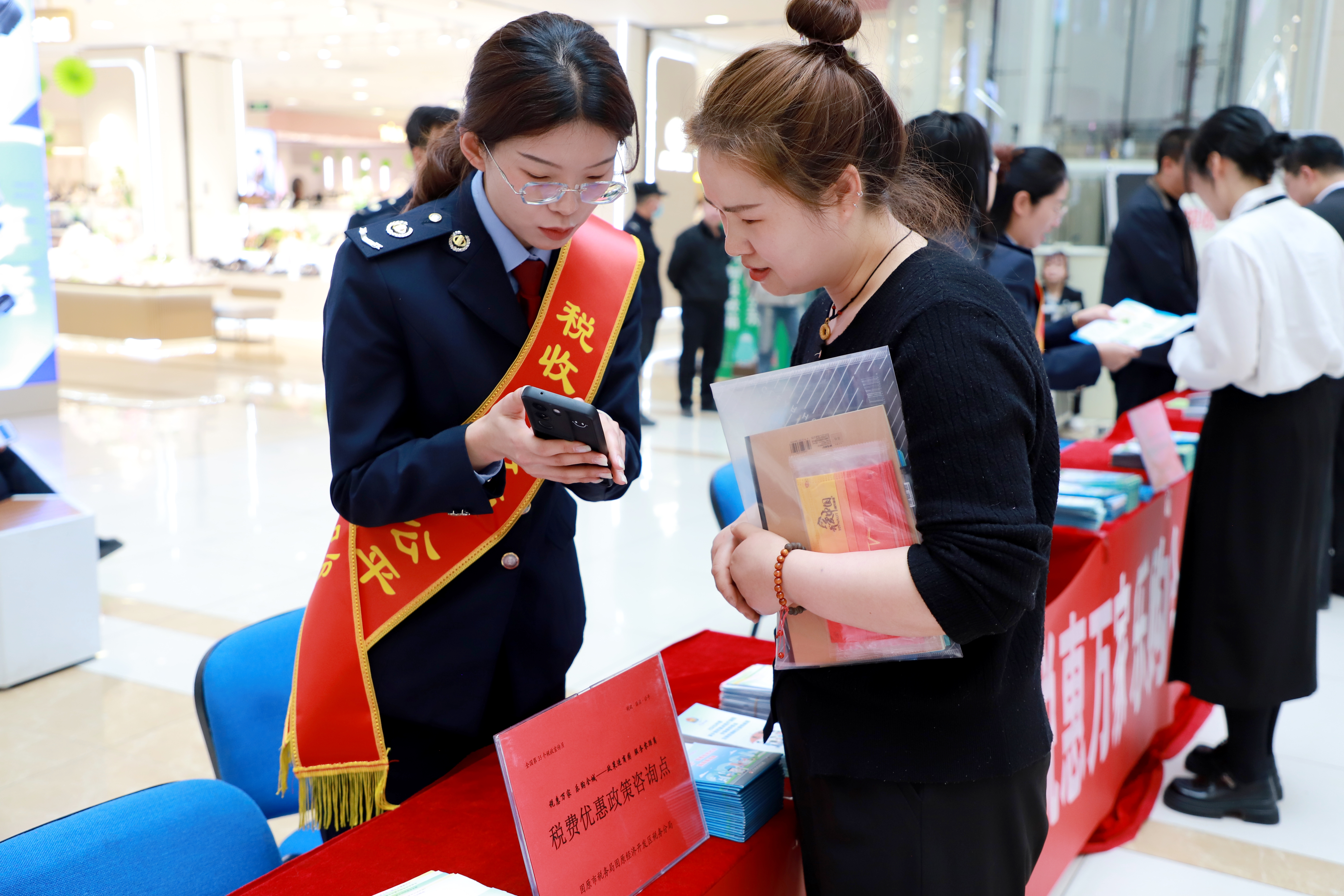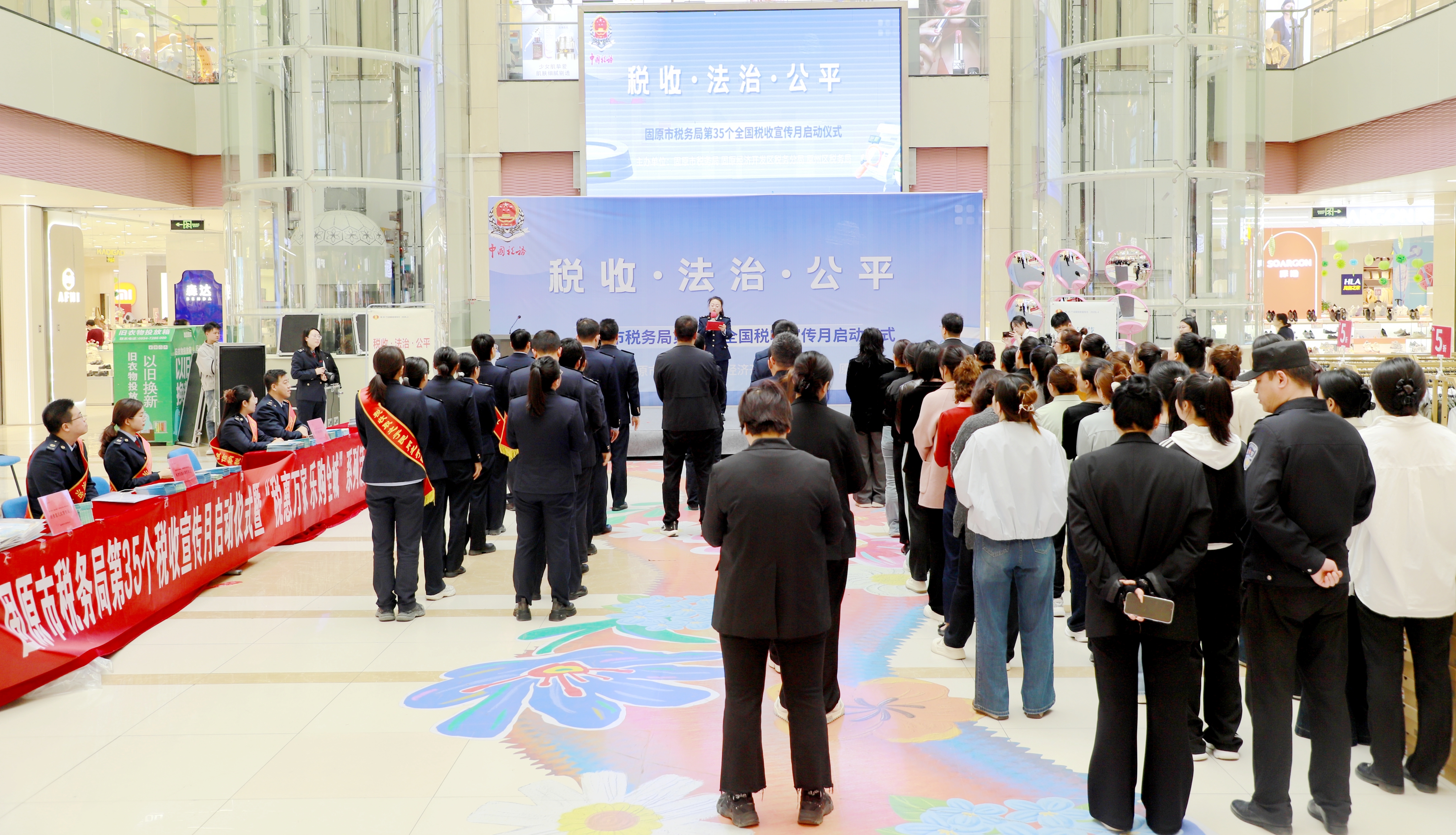 春风浩荡启新程,税收赋能正当时。4月1日上午,固原市第35个全国税收宣传月启动仪式暨税宣进商圈活动在新华百货商场拉开帷幕。本次活动以“税惠万家·乐购全城——政策进商圈、服务零距离”为主题,固原市税务局联合固原市商务投资促进局、固原经济开发区税务分局、原州区税务局共同主办,旨在将税收政策、便民服务送到商户和消费者身边,以“税”力量激活商圈消费活力,推动诚信纳税、合规经营的理念深入人心。